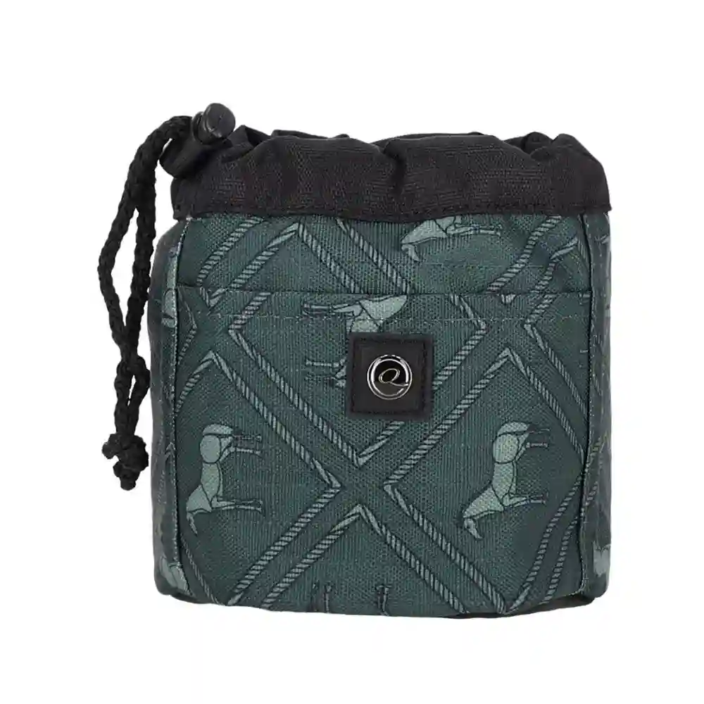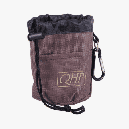 Small bag which can be used to store treats or other edible rewards when doing groundwork. The pocket can be attached in several ways to a belt or pants. It has a loop with D-ring, carabiner hook and two loops on the back.