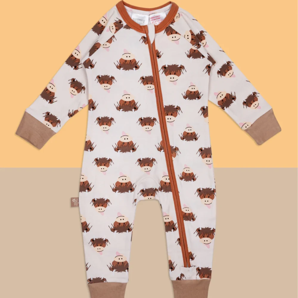 Blade & Rose Childrens Hamish Highland Cow Zip-Up Romper
