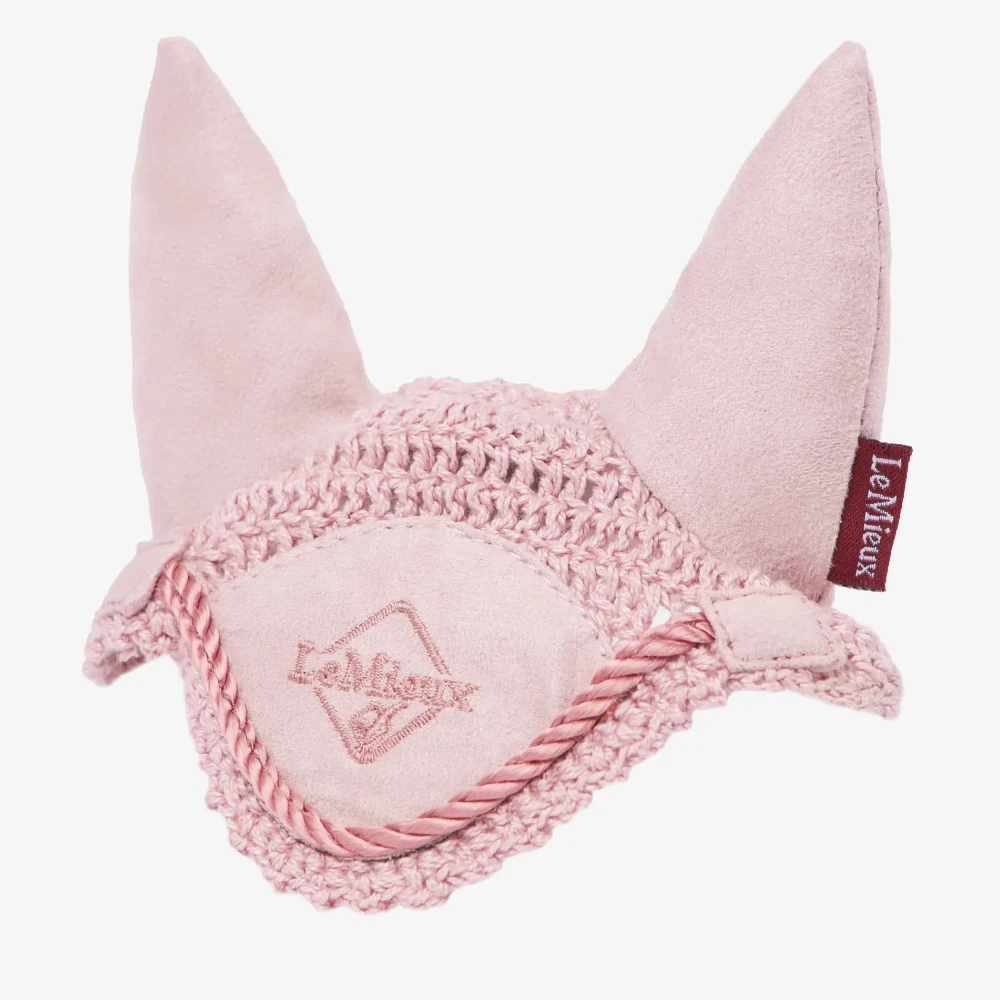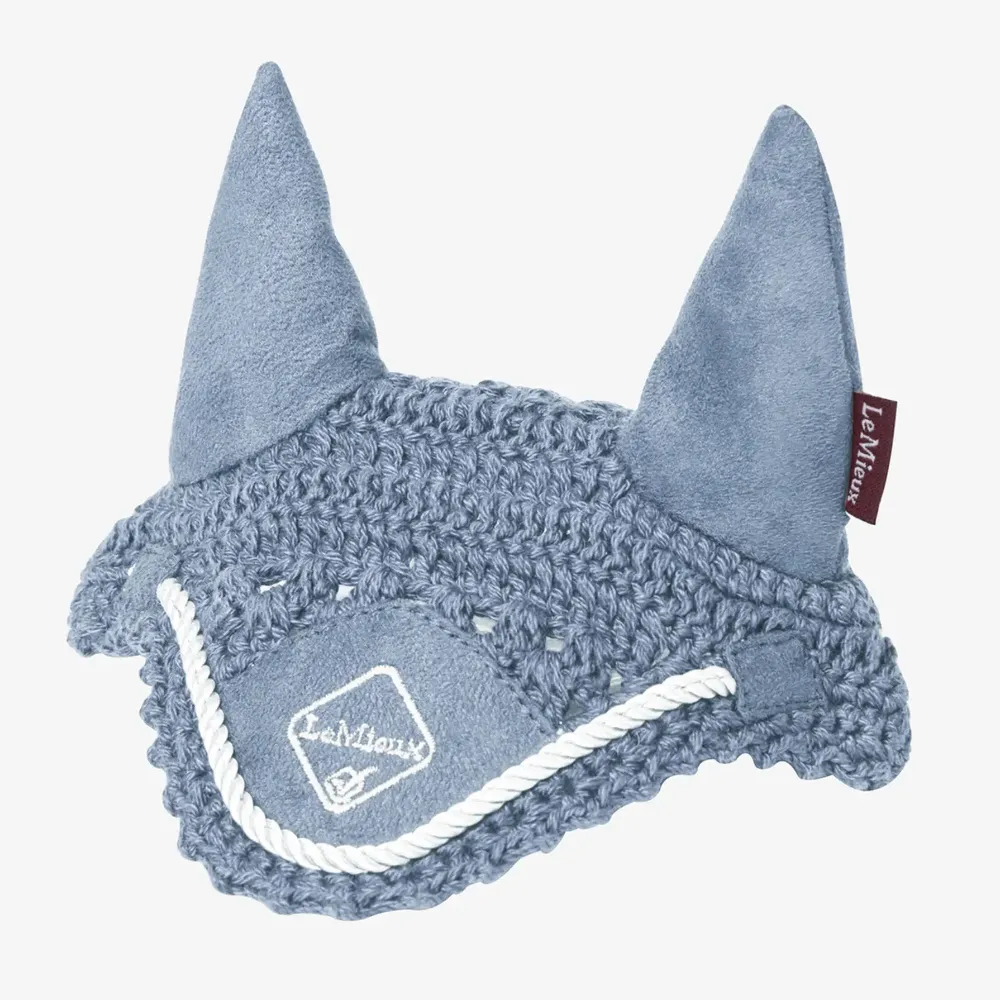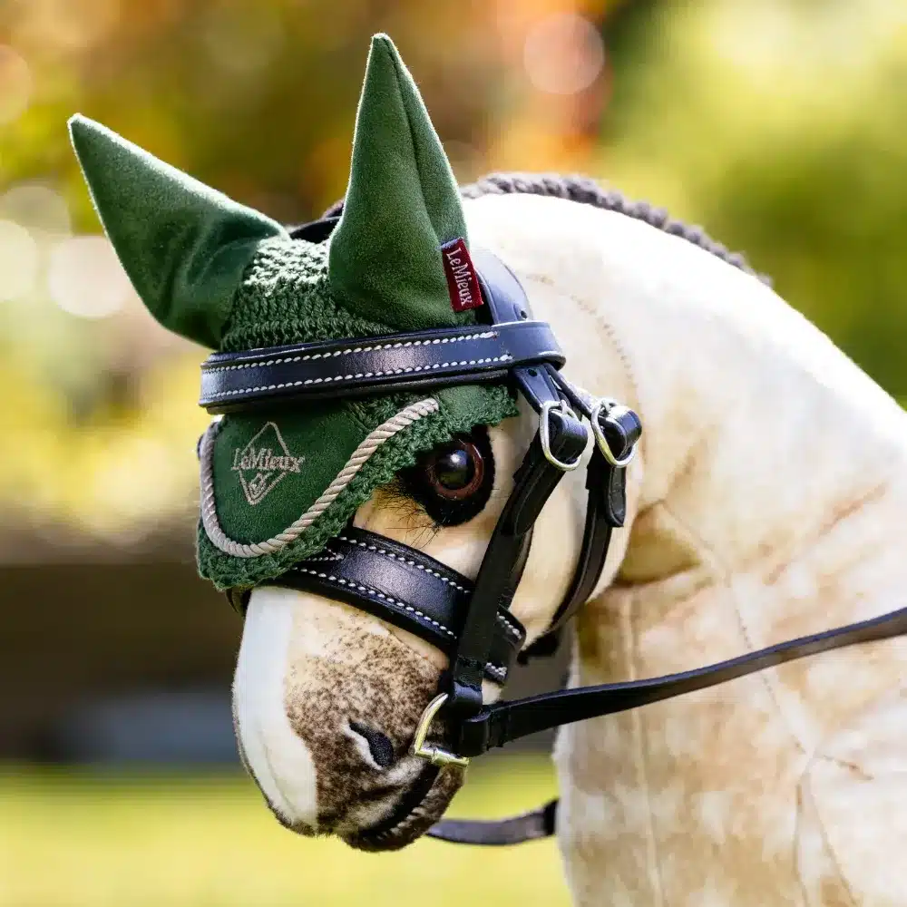 An identical miniature version of the LeMieux Classic Fly Hood with intricate handmade crochet.