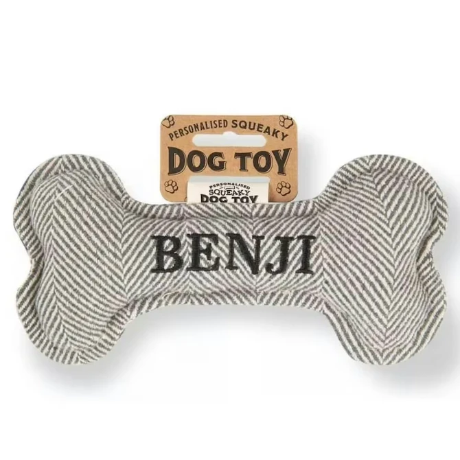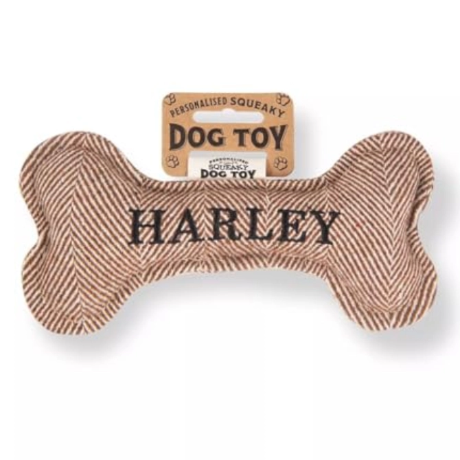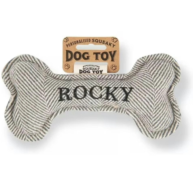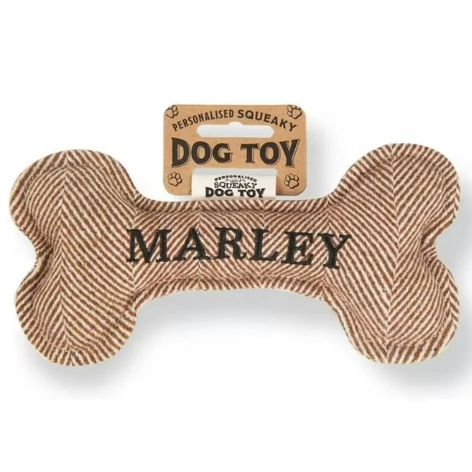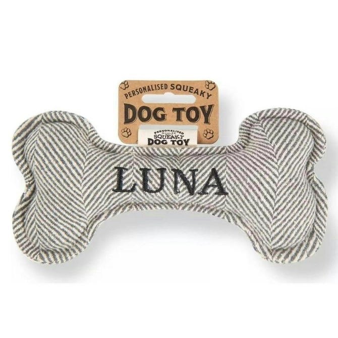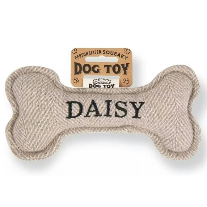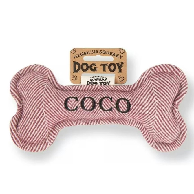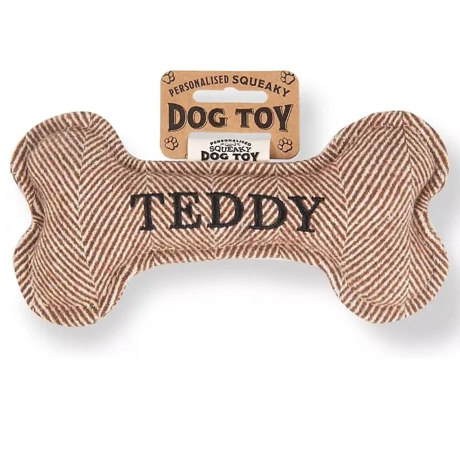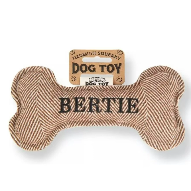 Each bone comes pre-personalised with your dog’s name or breed. Treat your pup to endless hours of fun and entertainment with the Squeaky Plush Dog Bone!
