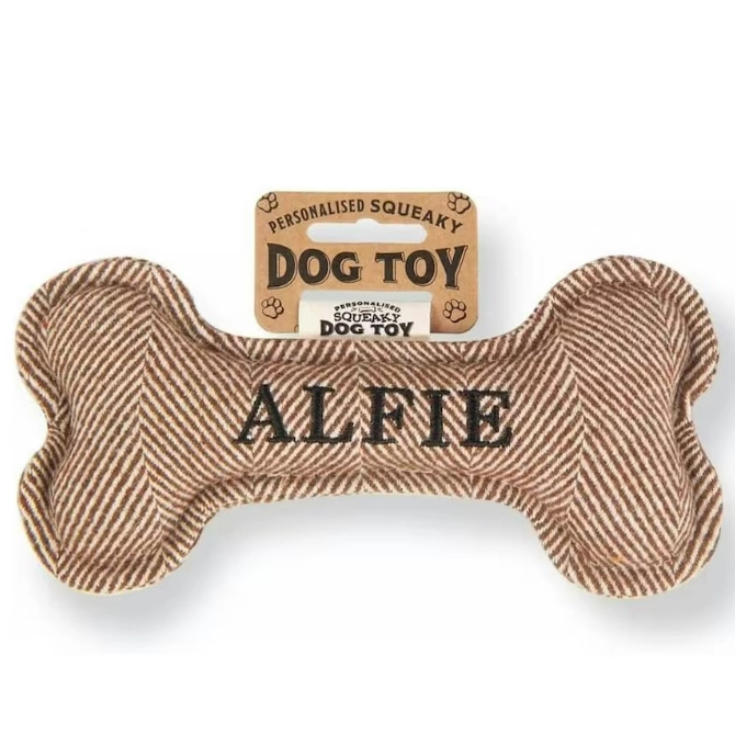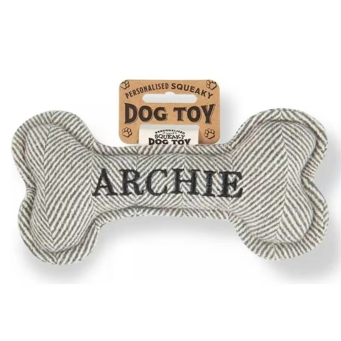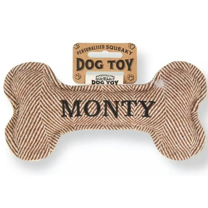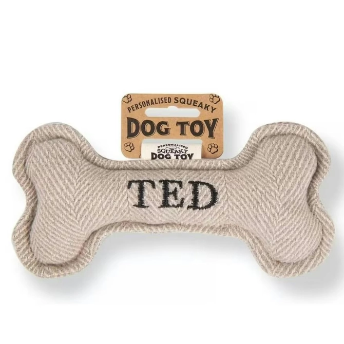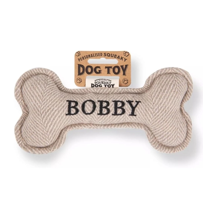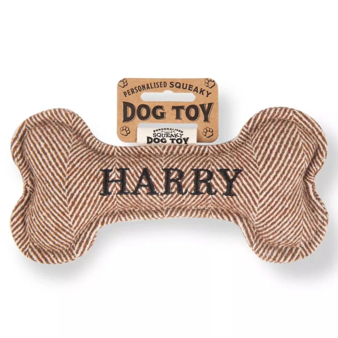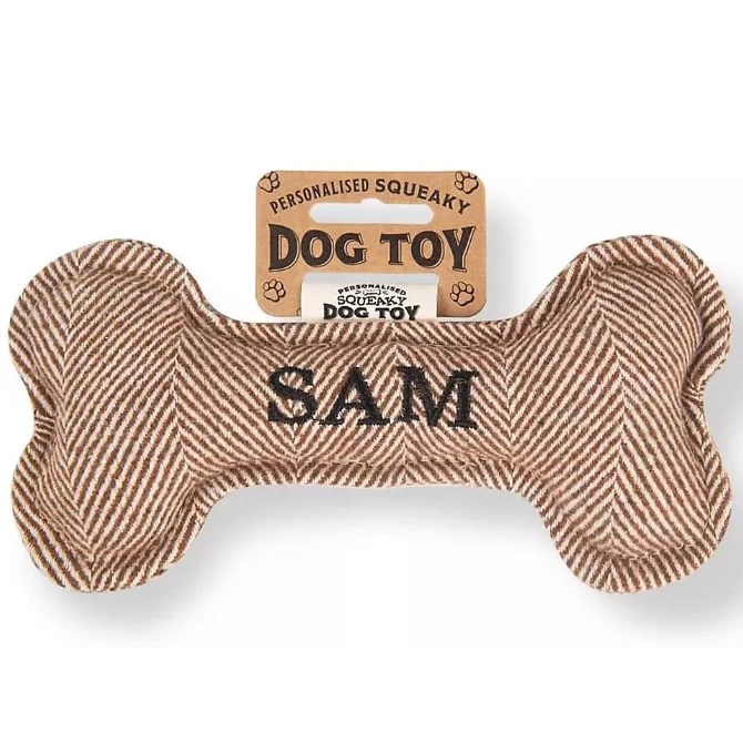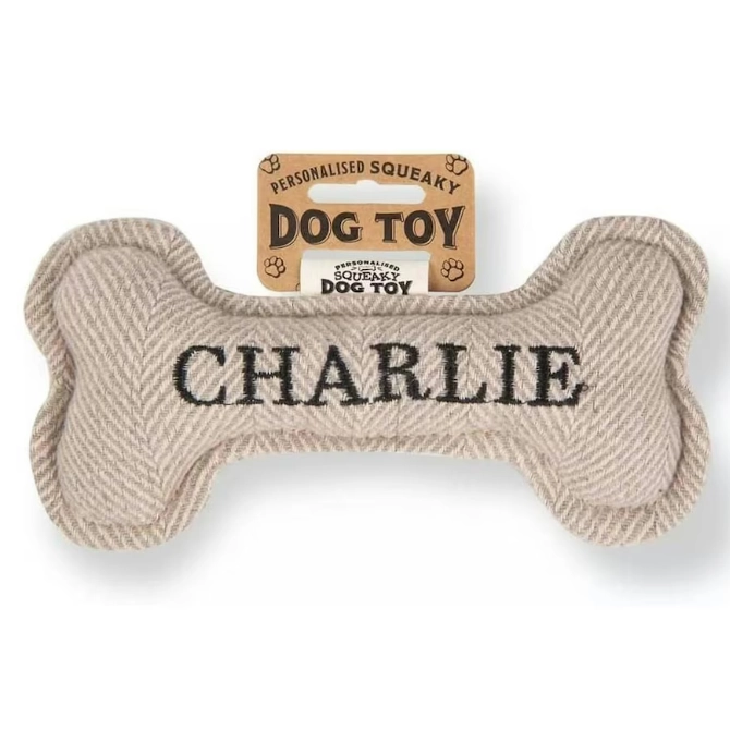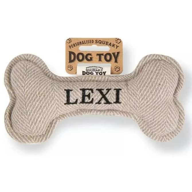Each bone comes pre-personalised with your dog’s name or breed. Treat your pup to endless hours of fun and entertainment with the Squeaky Plush Dog Bone!