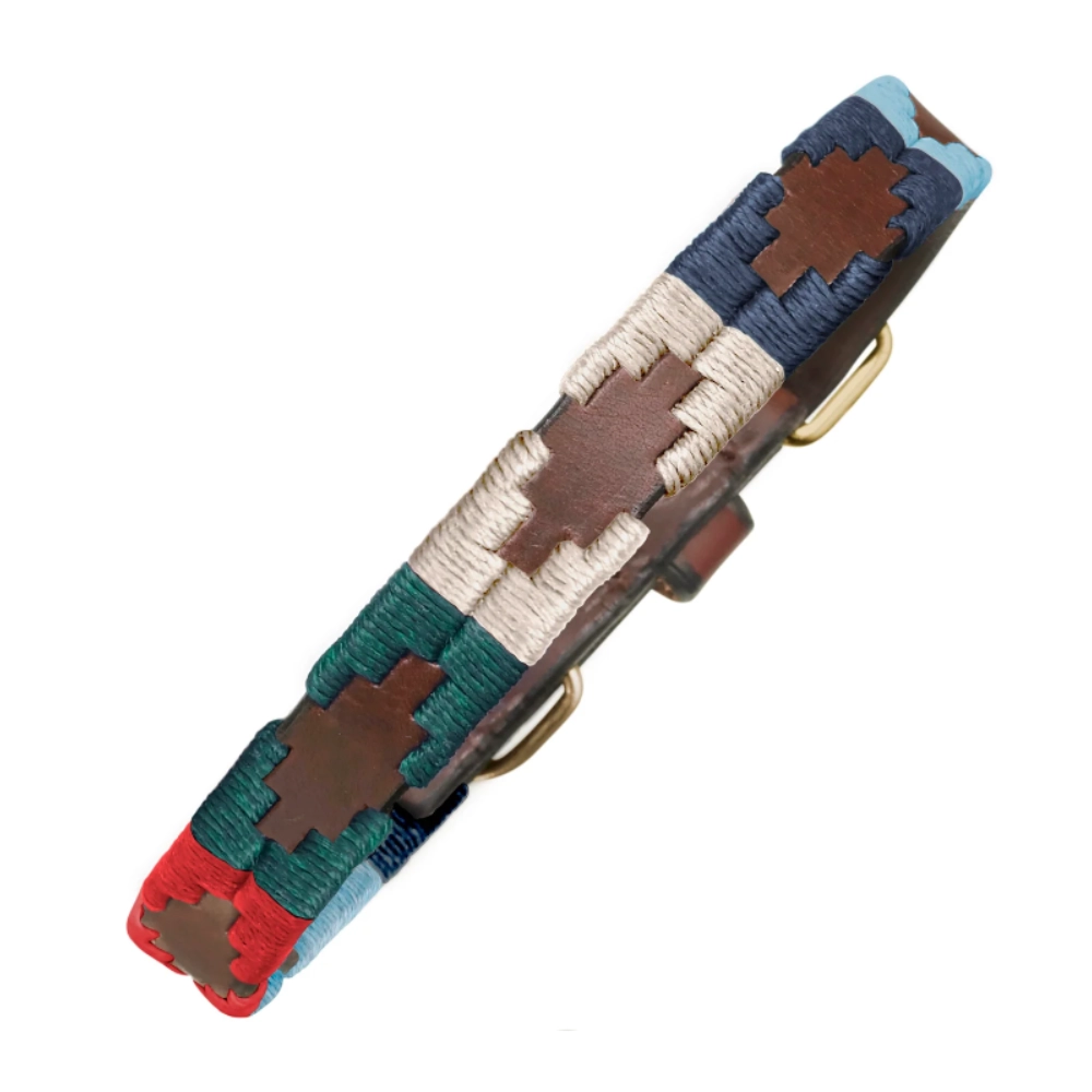 The Azules dog collar is a celebration of blue, reflecting the skies and waters of Argentina and all their potential for discovery and adventure. It is one of our most popular dog accessory designs.