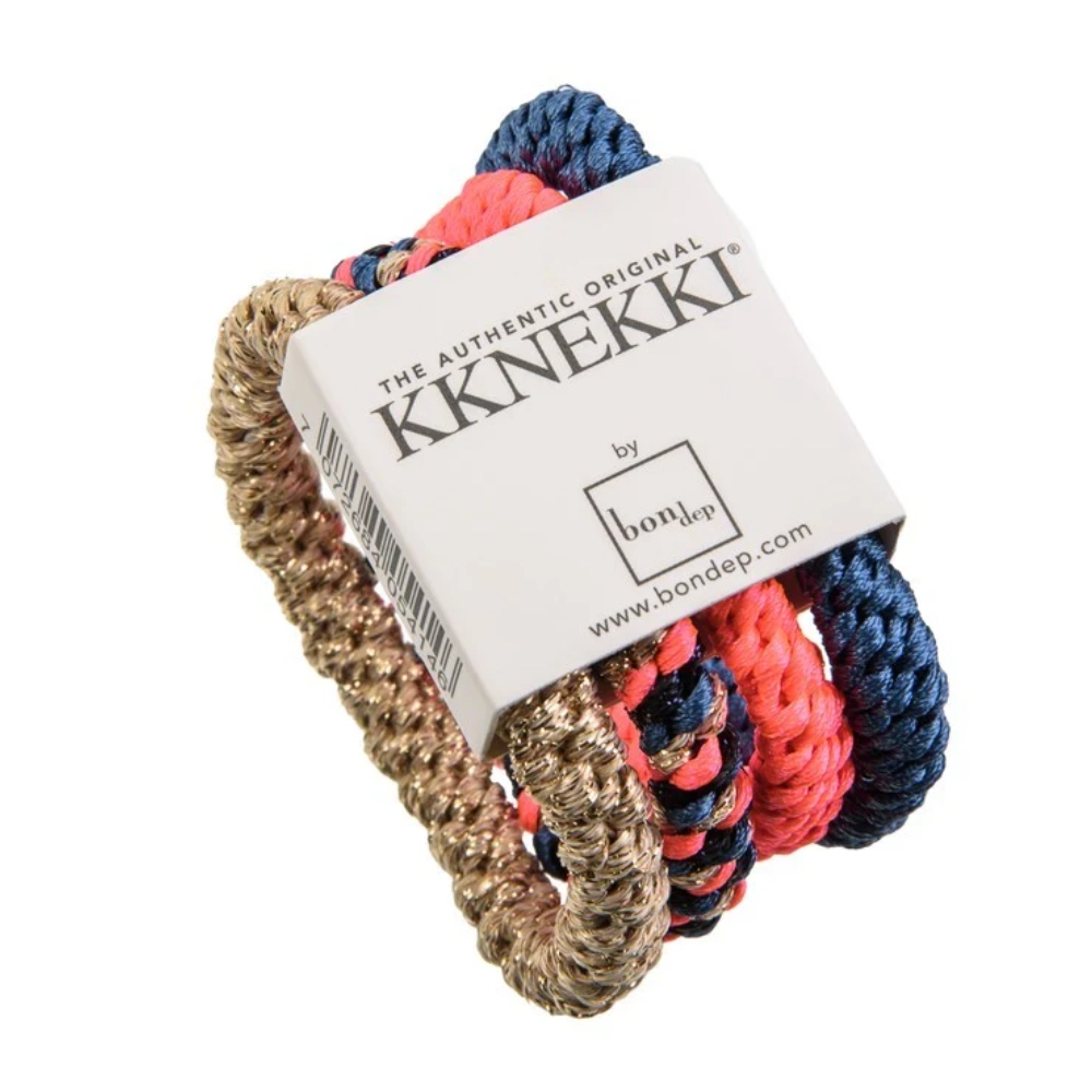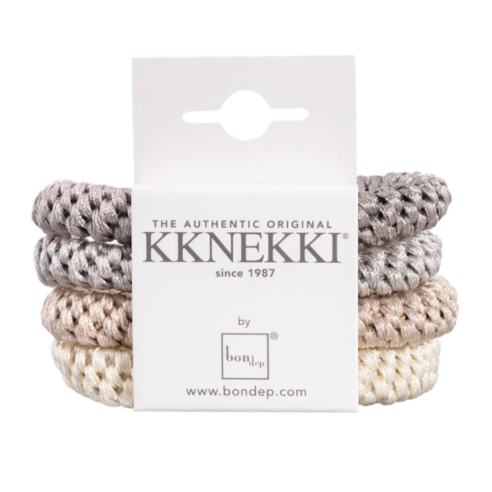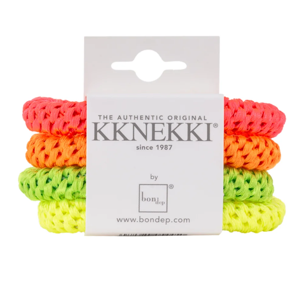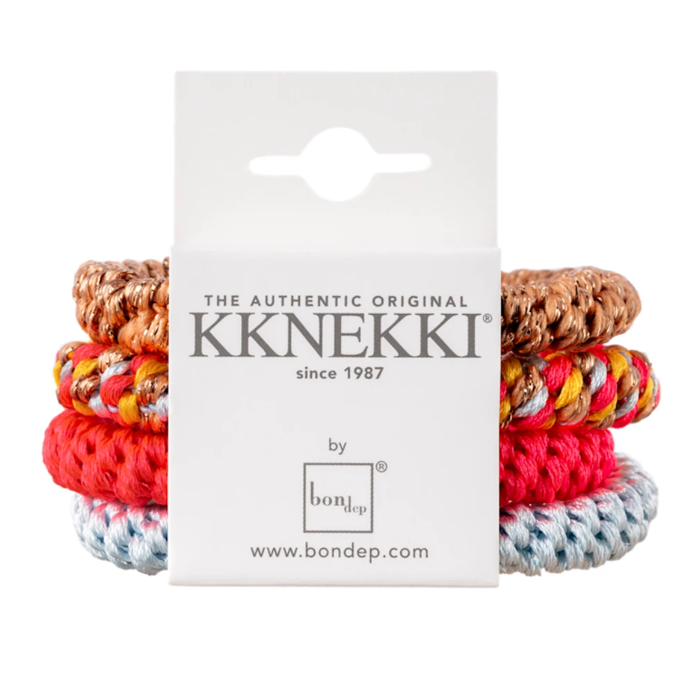The original KKNEKKI, super cute as a bracelet and they are also recognized as one of the best hair elastics in the world. The unique weaving technique makes them extremely soft for every hair type. KKNEKKI does not fade, fray or slack even when worn in salt water.