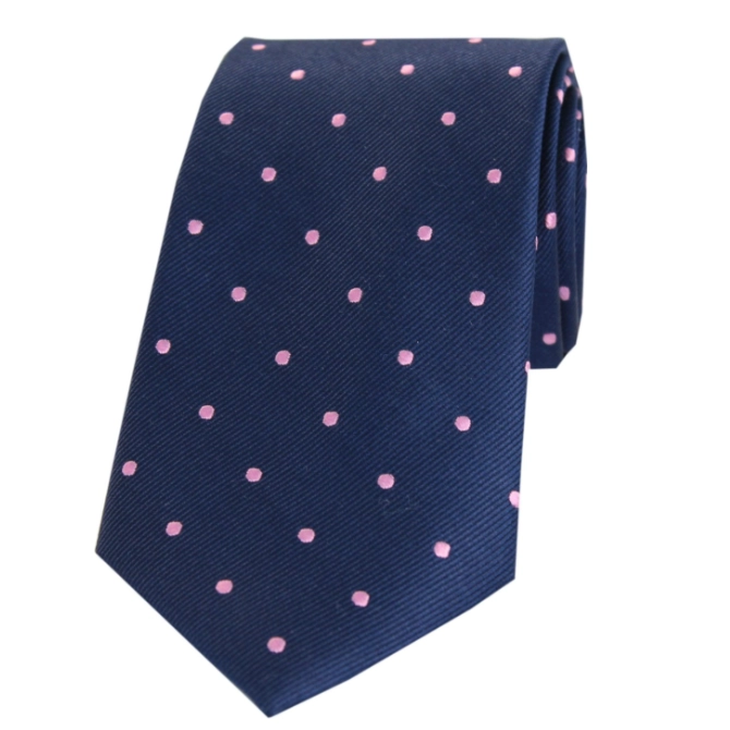 Soprano Navy And Pink Polka Dot Silk Tie