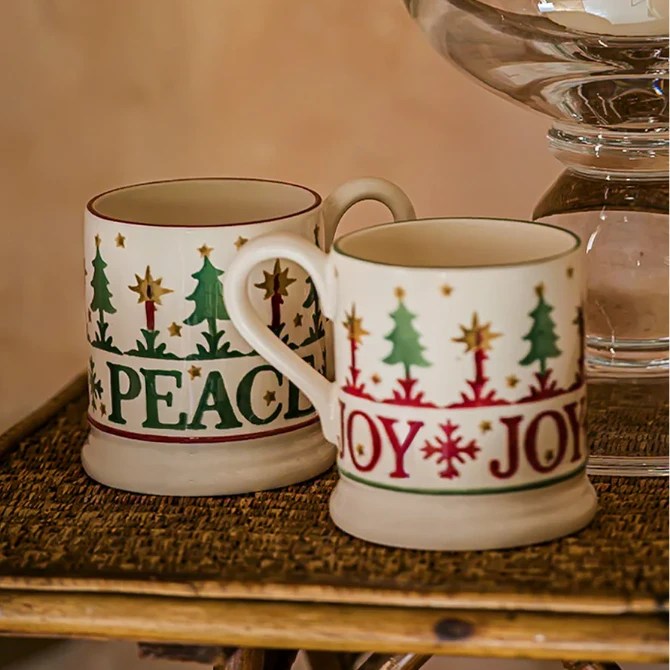 Our Christmas Joy Set Of 2 1/2 Pint Mugs is the answer (not least because these hand-decorated mugs come readily boxed).