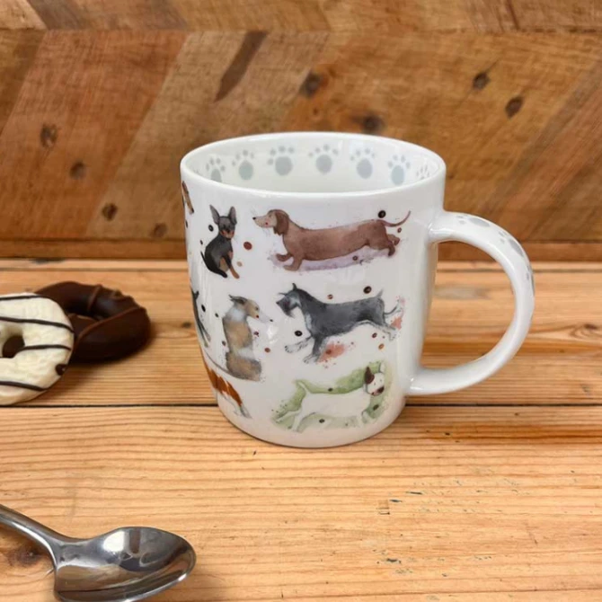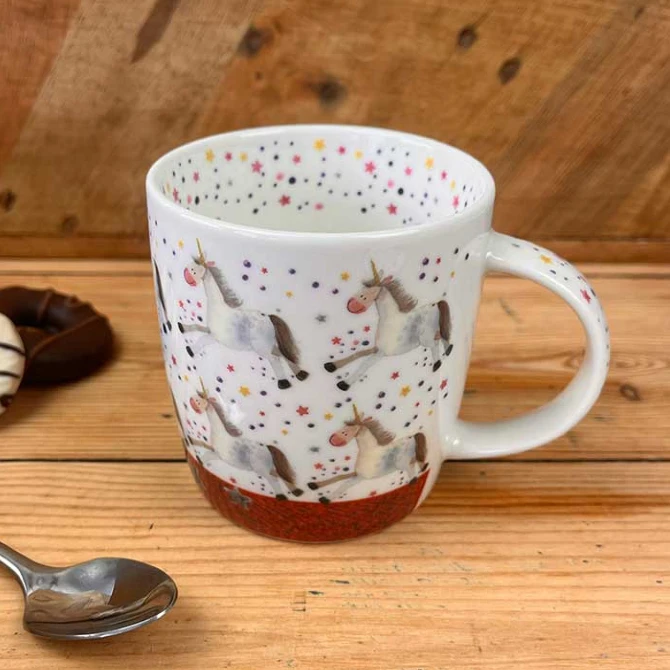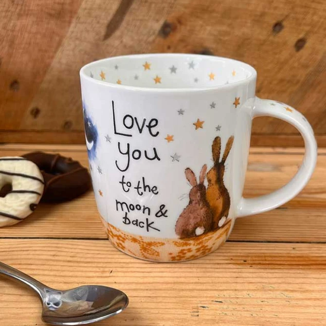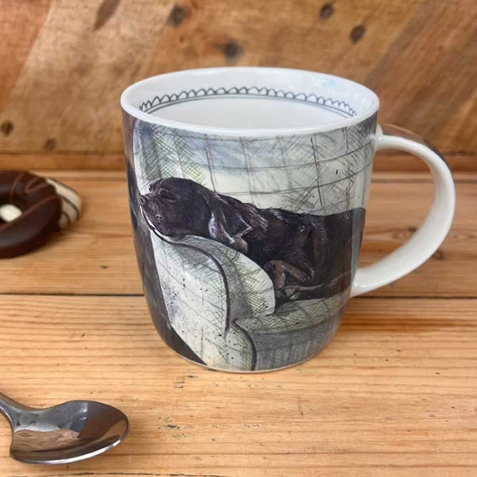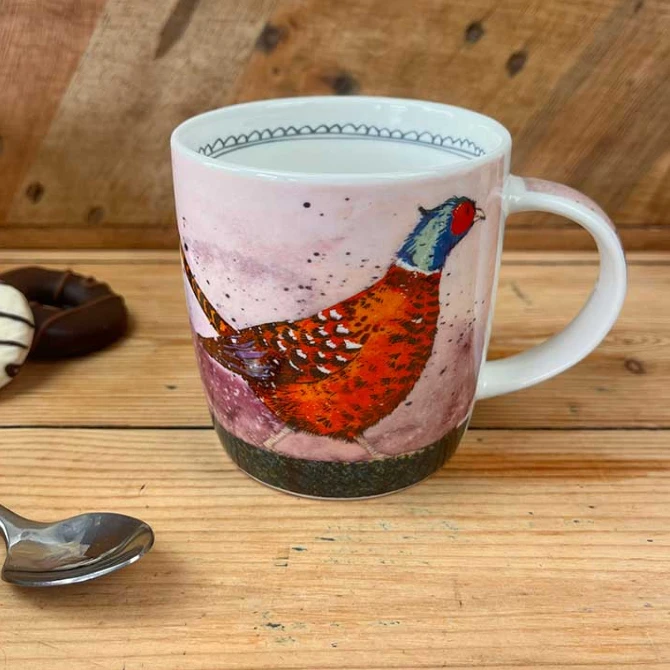 This Alex Clark mug will make a lovely addition to your kitchen. Perfect for coffee, tea and other hot drinks. Features illustrations around the inside rim and down the handle.