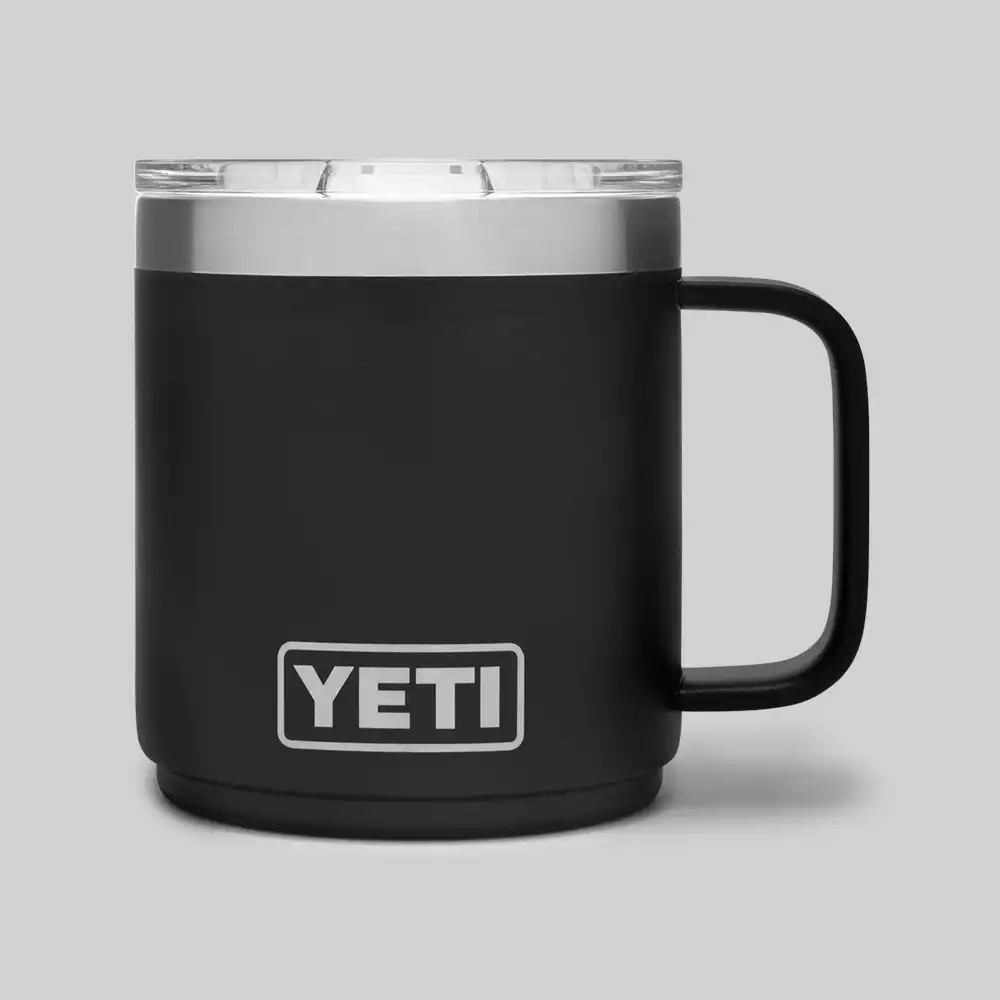 Unlike traditional camp mugs, the Yeti Rambler Mug features a double-wall, vacuum-insulated body which protects hands from hot or cold contents while keeping your coffee or tea hot from the first pour to the last sip.