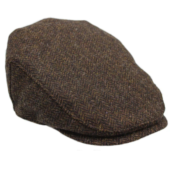 Heather Hats Chapman British Tweed Flat Cap Chocolate Herringbone