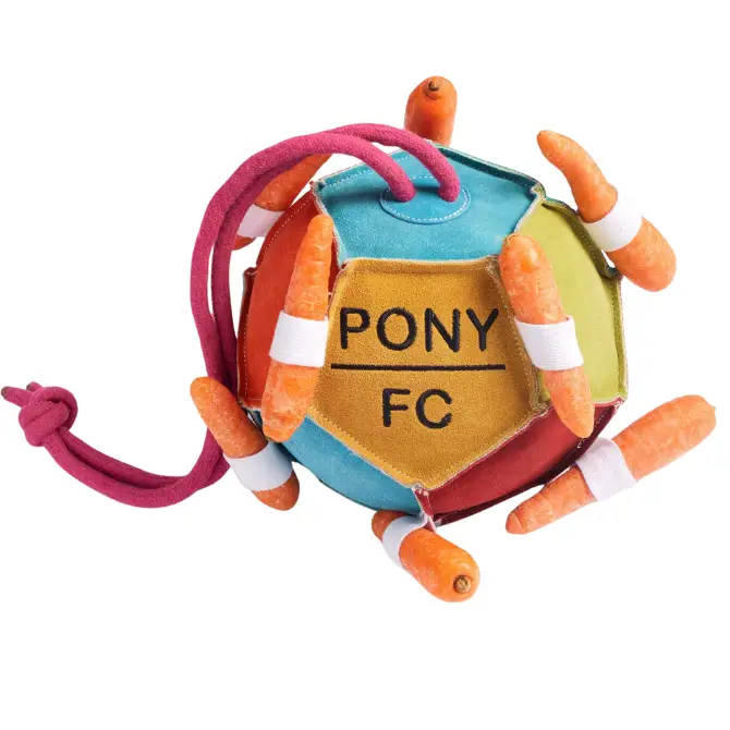 Made from a durable suede outer, lined with hessian for extra strength, filled with natural coconut husk stuffing, plus a jute rope handle for hanging in the stable, yard, or horsebox. Jute is a natural, sustainable plant fibre and is 100% biodegradable. In addition, the suede is a by-product, ensuring that this material is not wasted.